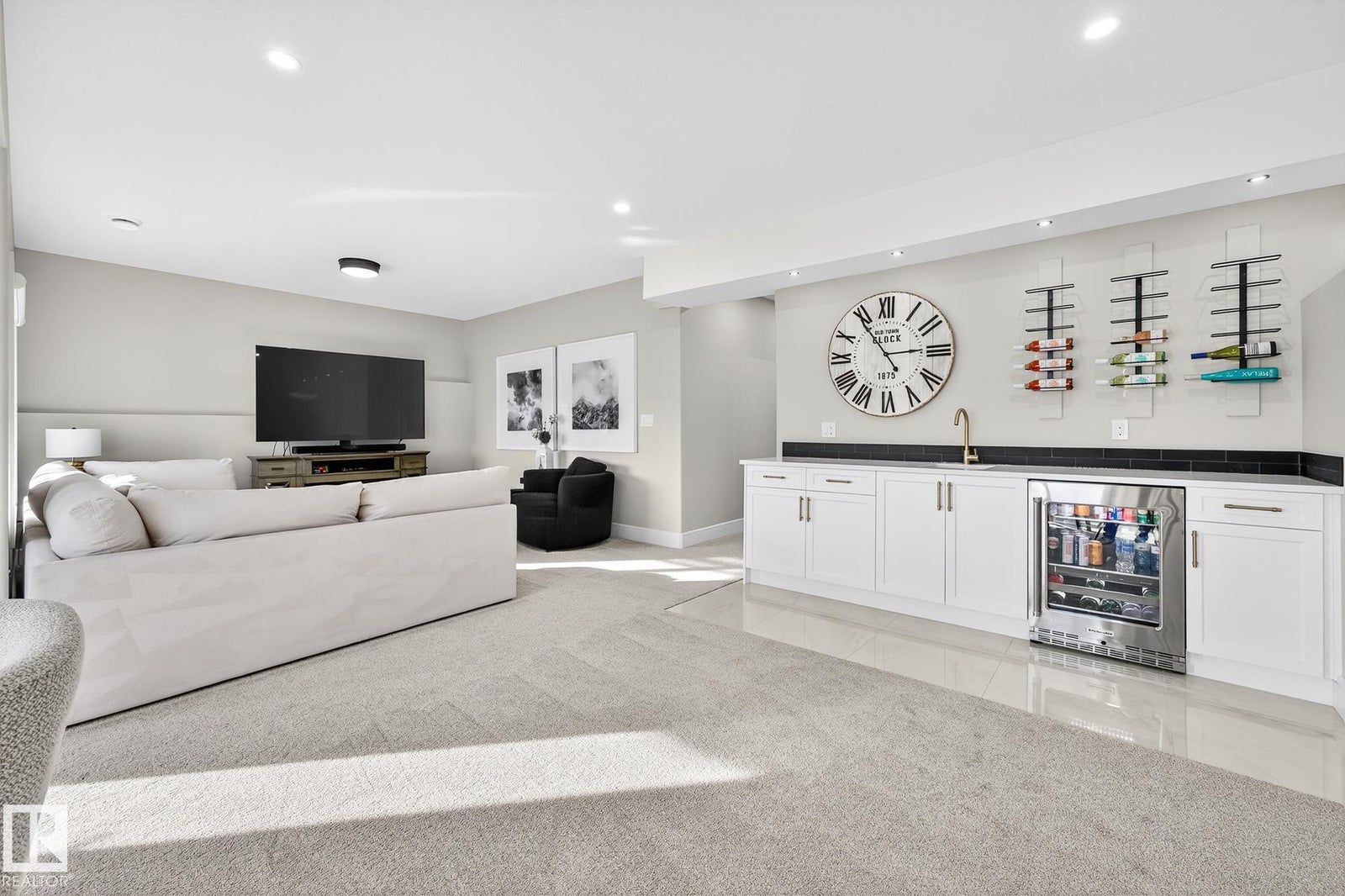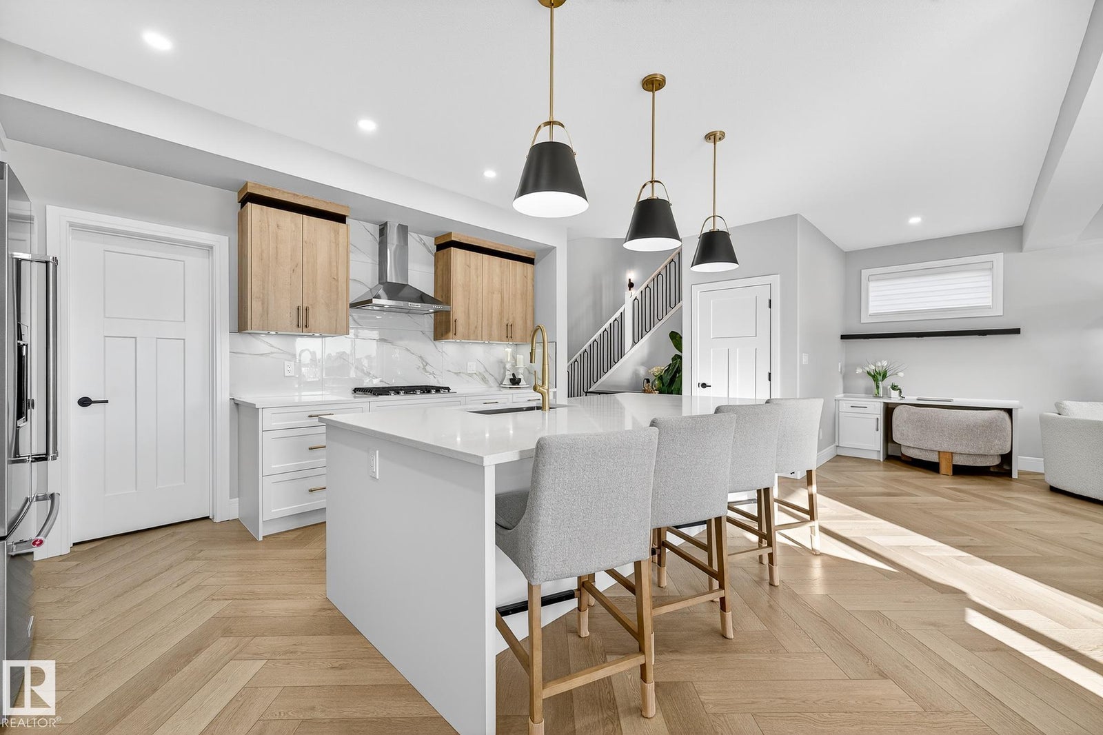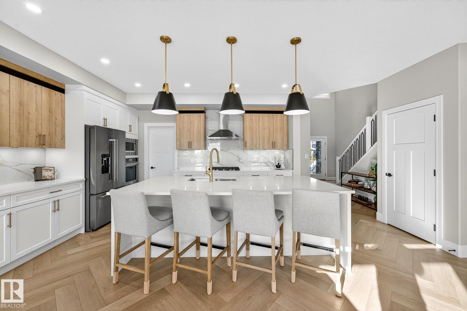 Every detail of this Erin Ridge North lake home feels intentional—crafted for those who love light, flow, and effortless elegance. From the sunlit herringbone floors to the designer kitchen with quartz surfaces and a walk-through pantry, every space invites you to linger and connect. The living room glows with warmth from a sleek fireplace and expansive windows framing tranquil water views. Upstairs, the primary suite feels like a private spa with a soaker tub, glass shower, and generous closet, while two additional bedrooms and a luminous bonus room add comfort for family or guests. The walkout basement extends your lifestyle with a wet bar, rec area, and access to the covered patio, where peaceful lake views set the tone for quiet mornings or sunset gatherings. With low-maintenance landscaping, a deck off the dining area, and a seamless blend of modern design and timeless warmth, this home also features a heated garage—an ideal space for hobbyists, projects, or year-round tinkering.
