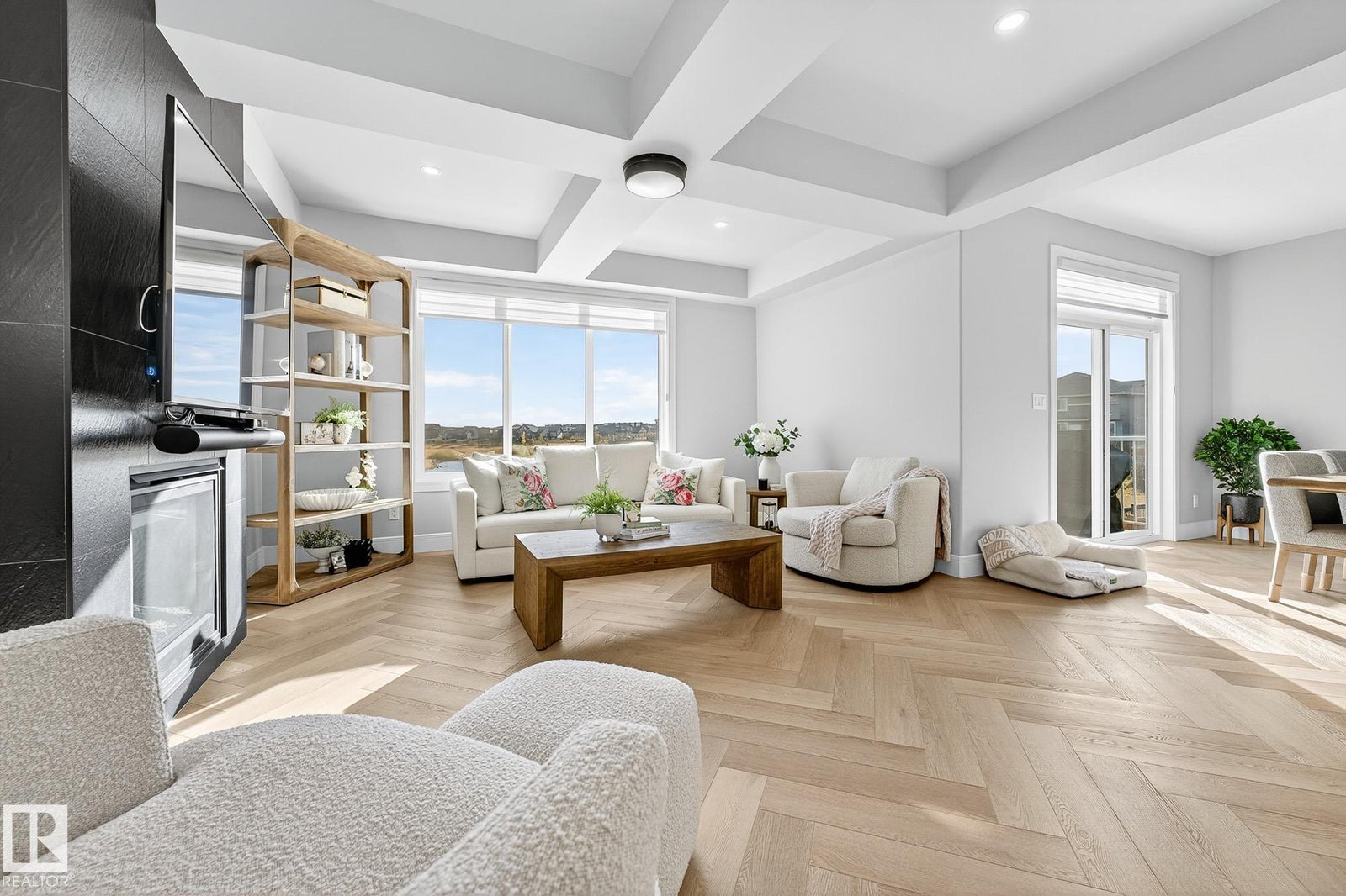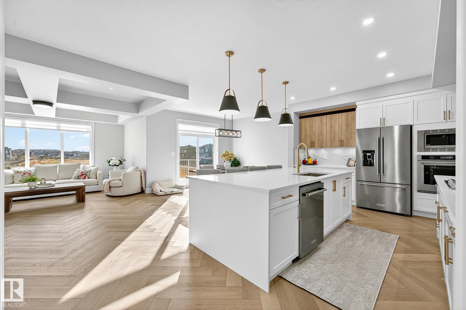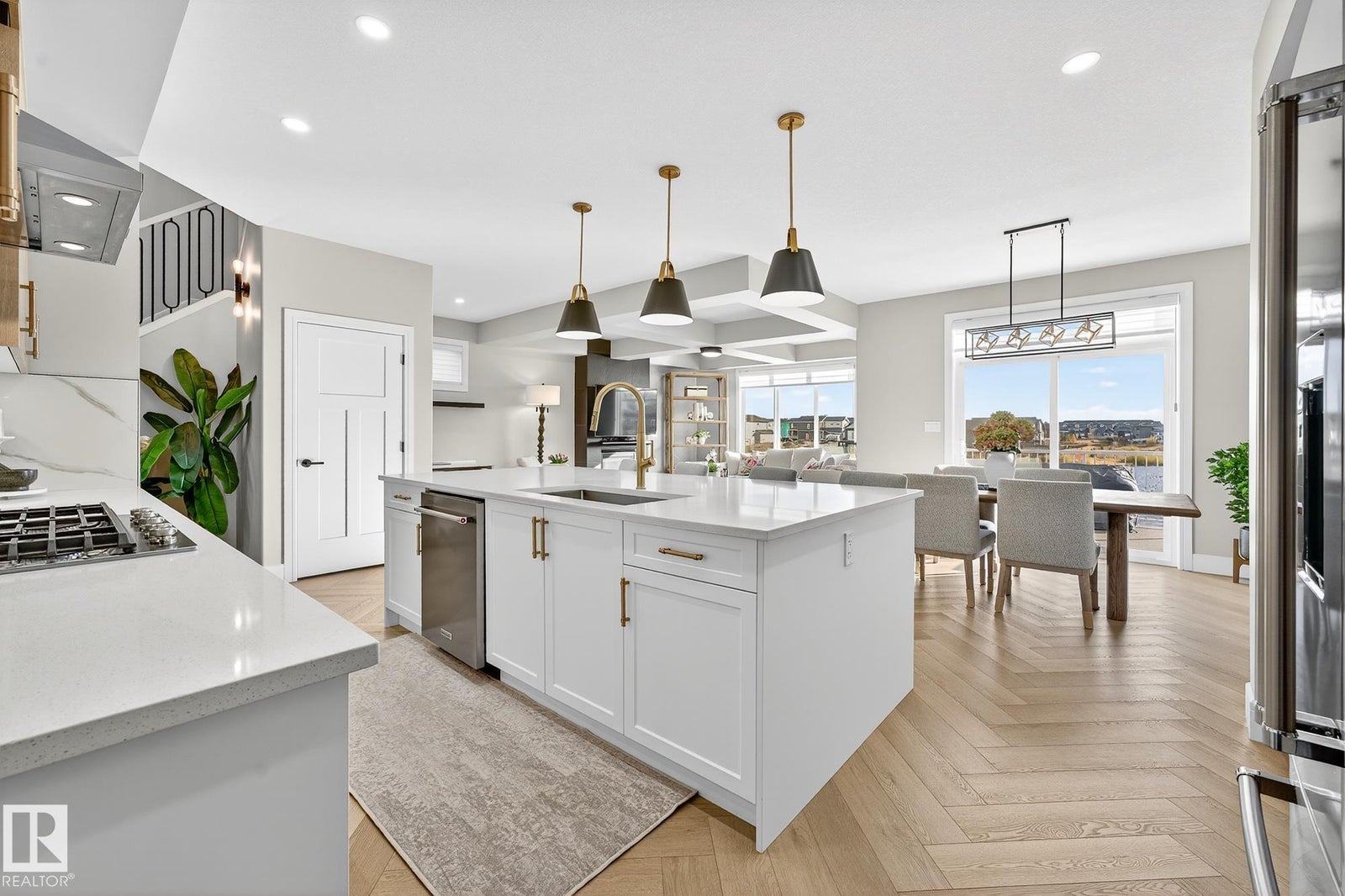 Every detail of this Erin Ridge North lake home feels intentional—crafted for those who love light, flow, and effortless elegance. From the sunlit herringbone floors to the designer kitchen with quartz surfaces and a walk-through pantry, every space invites you to linger and connect. The living room glows with warmth from a sleek fireplace and expansive windows framing tranquil water views. Upstairs, the primary suite feels like a private spa with a soaker tub, glass shower, and generous closet, while two additional bedrooms and a luminous bonus room add comfort for family or guests. The walkout basement extends your lifestyle with a wet bar, rec area, and access to the covered patio, where peaceful lake views set the tone for quiet mornings or sunset gatherings. With low-maintenance landscaping, a deck off the dining area, and a seamless blend of modern design and timeless warmth, this home also features a heated garage—an ideal space for hobbyists, projects, or year-round tinkering.