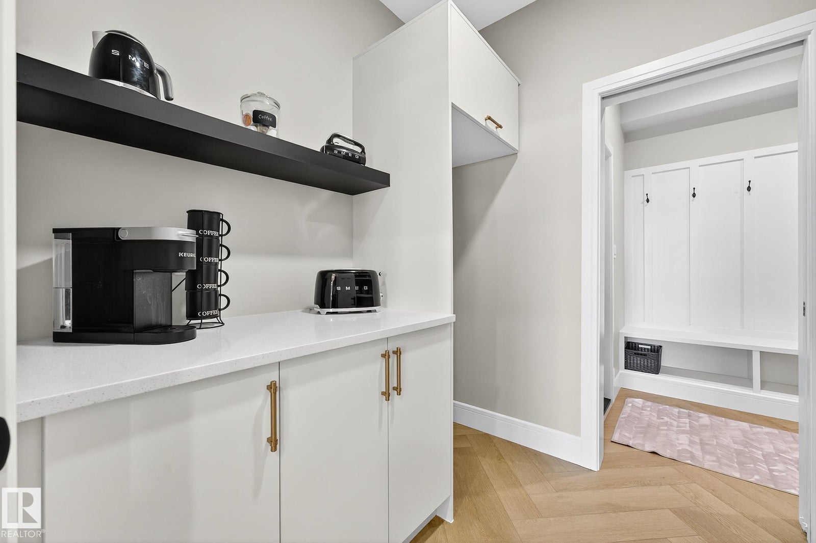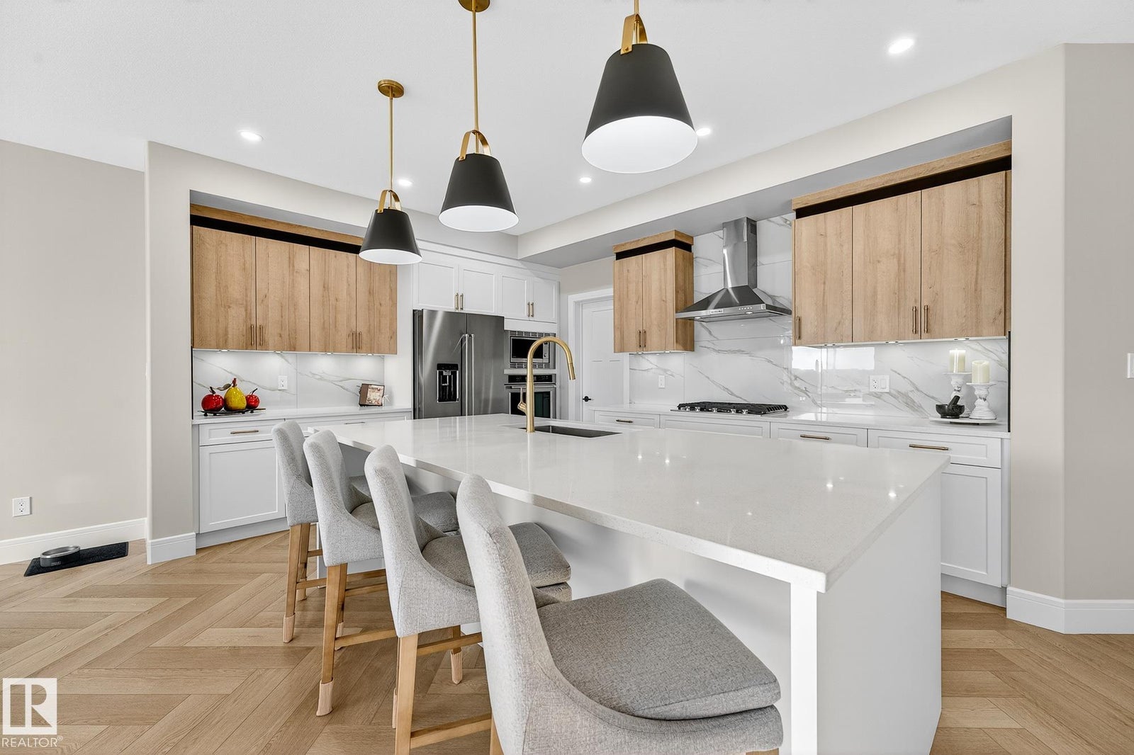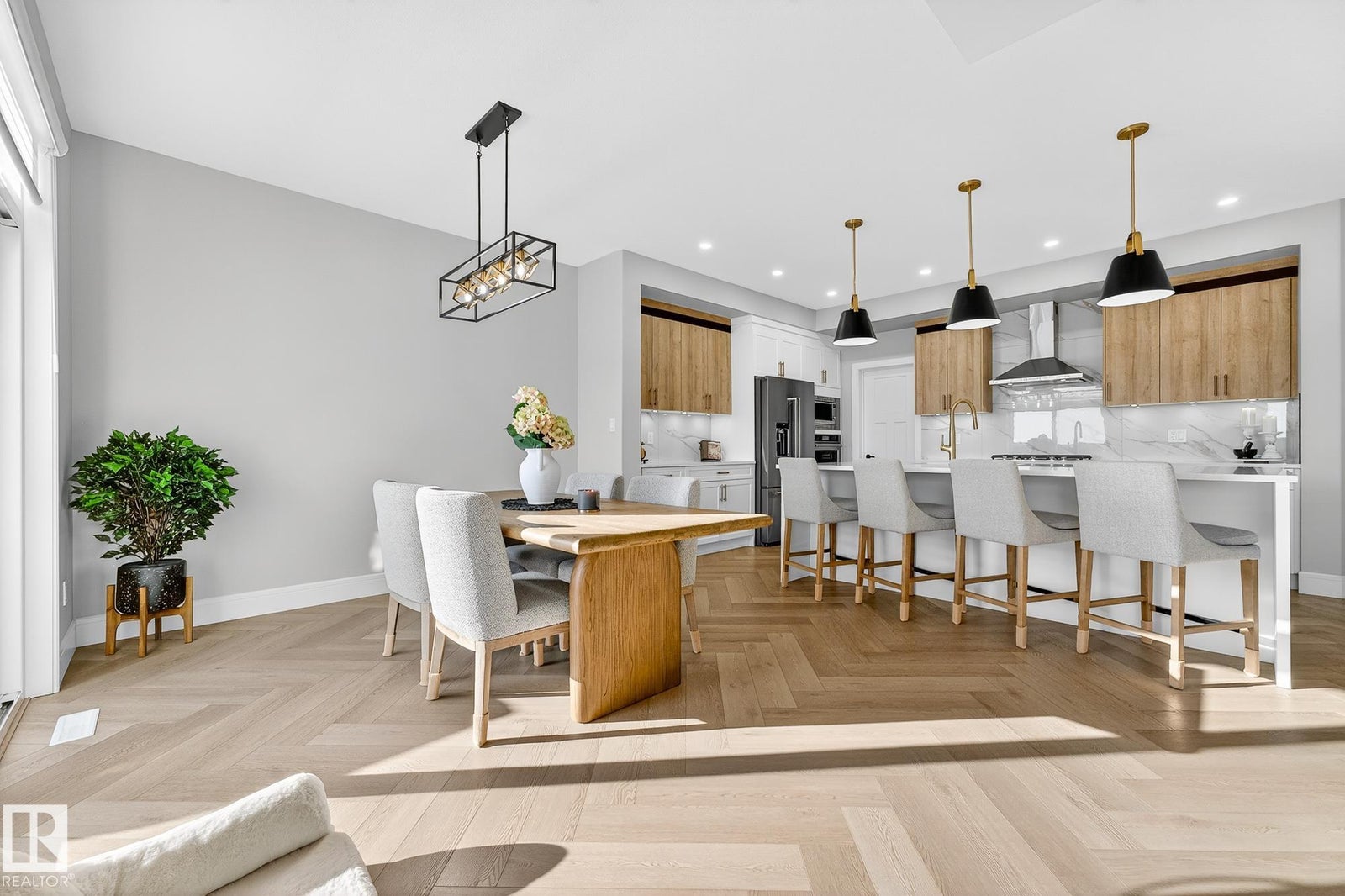 Every detail of this Erin Ridge North lake home feels intentional—crafted for those who love light, flow, and effortless elegance. From the sunlit herringbone floors to the designer kitchen with quartz surfaces and a walk-through pantry, every space invites you to linger and connect. The living room glows with warmth from a sleek fireplace and expansive windows framing tranquil water views. Upstairs, the primary suite feels like a private spa with a soaker tub, glass shower, and generous closet, while two additional bedrooms and a luminous bonus room add comfort for family or guests. The walkout basement extends your lifestyle with a wet bar, rec area, and access to the covered patio, where peaceful lake views set the tone for quiet mornings or sunset gatherings. With low-maintenance landscaping, a deck off the dining area, and a seamless blend of modern design and timeless warmth, this home also features a heated garage—an ideal space for hobbyists, projects, or year-round tinkering.