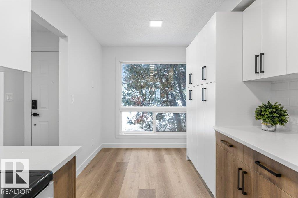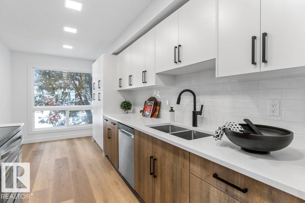 STYLISHLY RENOVATED & MOVE-IN READY! This beautifully updated 1,162 sq ft condo offers modern comfort and effortless living. The brand-new kitchen is a standout, featuring quartz countertops, tile backsplash, new cabinetry with pantry space, and updated appliances—perfect for everyday living and entertaining. New vinyl plank flooring and plush carpet flow throughout, complemented by updated light fixtures and sleek new pot lights that brighten every space. The bathrooms have been fully refreshed with a new stand-up shower, new bathtub, modern tilework, and updated plumbing fixtures for a clean, contemporary feel. Additional upgrades include a newer hot water tank, adding peace of mind. Thoughtfully renovated from top to bottom, this home offers a fresh, modern look with nothing left to do but move in and enjoy. Conveniently located close to schools, shopping, and quick access to the Anthony Henday, making daily commutes and errands easy. Ideal for first-time buyers, downsizers.